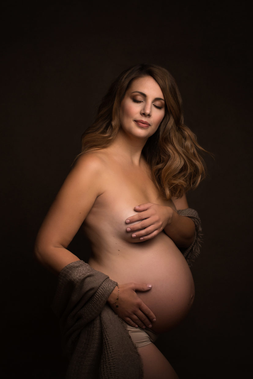 Nous réaliserons votre séance grossesse entre le 7e et 8e mois (28-34 semaines). Votre ventre est bien rond et n’avez pas la fatigue du 9e mois.
